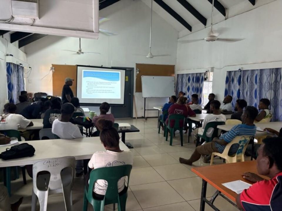 Assistant Social Service Coach (PMU) facilitating session on mental health during one of the trainings for Auki town batch, Malaita Province.