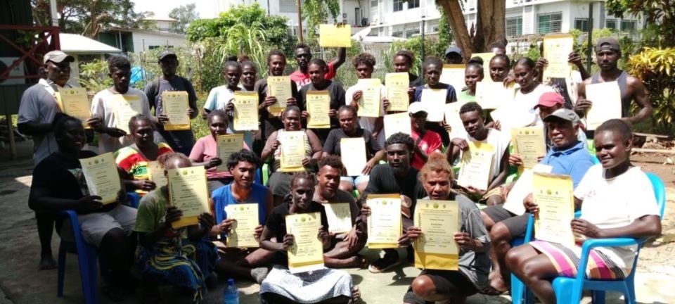 Gizo batch 3 displaying their certificates after the work-readiness training conducted by CAUSE II Project Management and Implementation Unit.
