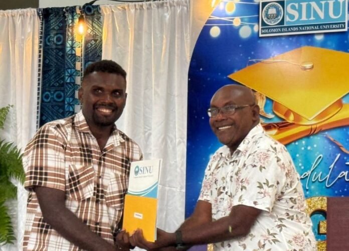 Zerrick Pentani, a student from Marovo Island in the Western Province, is one of the 33 students receiving a special award for his strong performance in the Diploma of Community Based Rehabilitation at the High Achievers Award night at Solomon Islands National University (SINU).